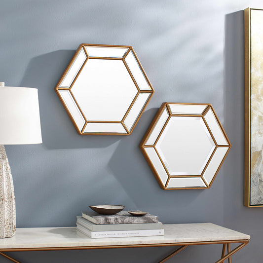 Nordic Style Iron Art Hexagon Shape Cosmetic Mirror Wall Hanging Mirror No-Punch Bathroom Room Makeup Mirror Home Decorative