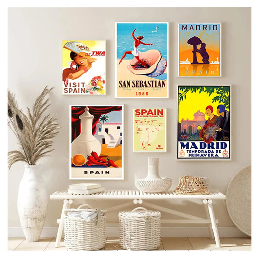 Canvas Painting Vintage Wall Kraft Posters Coated Wall Stickers Home Decorative Pictures Gift Spain Madrid San Sebastain Travel