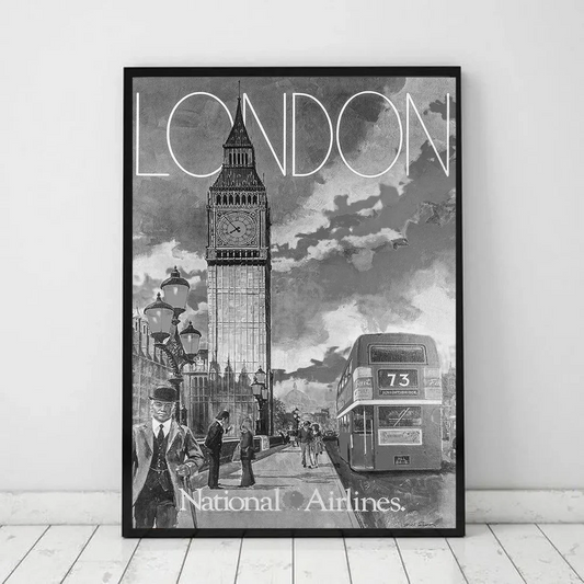 Black White Retro Paris London Anime Posters Sticky HD Quality Wall Art Retro Posters for Home Kawaii Room Decor