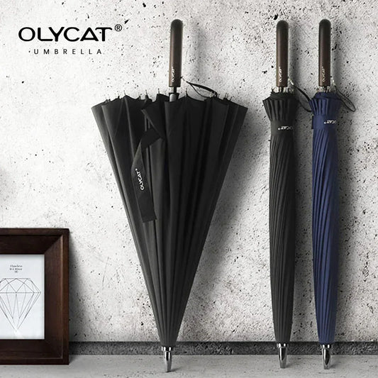 OLYCAT 24K Straight Long Umbrella Windproof Strong Wooden Handle Rain Umbrella Women Men Business Brand Glassfiber Paraguas