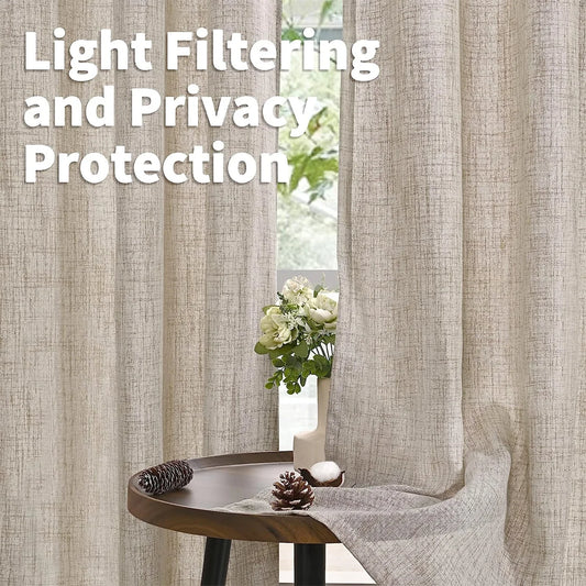 Pinch Pleat Curtain, Light Filtering Linen Curtain Drape Panel for Living Room and Silding Door