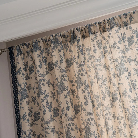 American Floral WithTassels Cotton Linen Blackout Window Curtain Thick Ready-made Drapes for Bedroom Curtains In The Living Room
