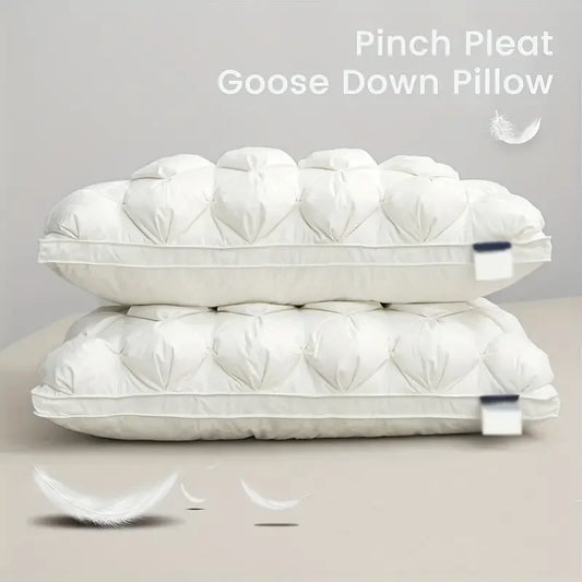 Luxury Goose Down Feather Pillows Inserts, Pinch Pleat Design Standard Queen Size Super Support 5 Star Hotel Bed Sleeping Pillow