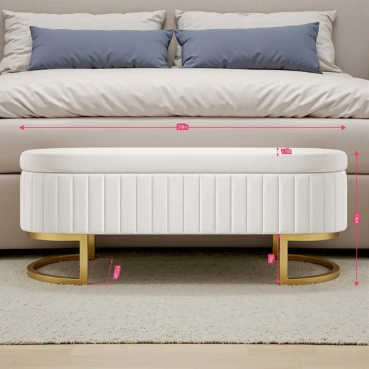 50" Velvet Storage Bench,Ottoman Bench with 300lb Seating,Upholstered Fabric with Gold Legs,Flipping Lid Entryway Footrest