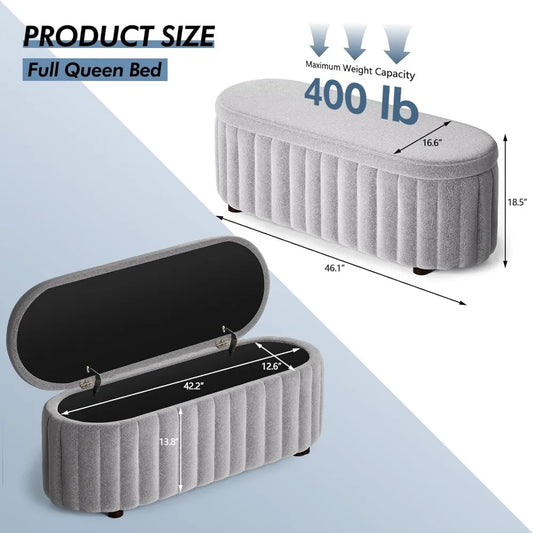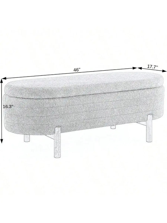 Oval Ottoman StorageBench Chenille Fabric Bench with Large Storage Space for The Living Room,Entryway and Bedroom Storage Bench
