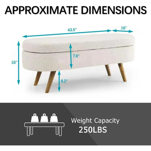 43.5" Storage Ottoman Bench with 250lb Seating, Linen Upholstered Wood Legs Safety Hinge Flip Top Oval