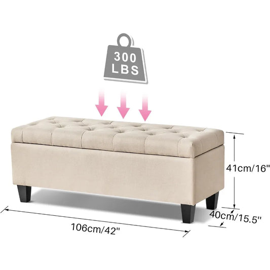 Storage Ottoman Bench,End of Bed Storage Bench, Bedroom Bench with Storage, Load up to 300 LBS, Tufted Storage Bench for Bedroom