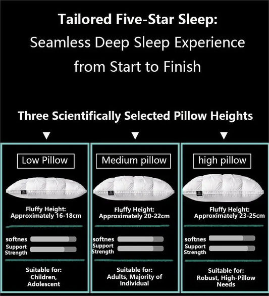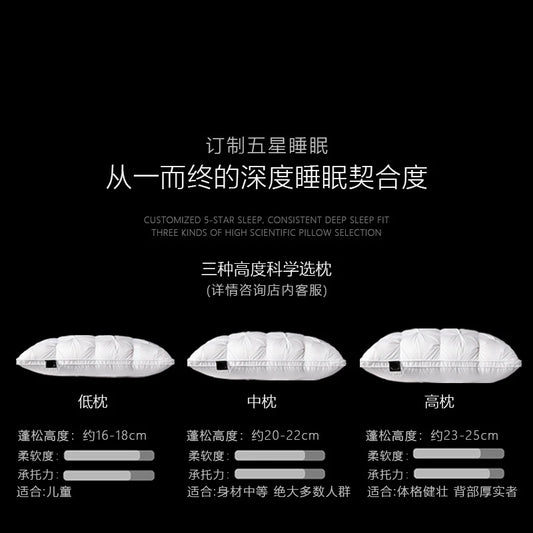 95% Goose Down Pillow White Cotton PillowCover Rectangle Bedroom Sleep 5-Star Hotel Pillow Low-Mid-high Pillows for Sleeping
