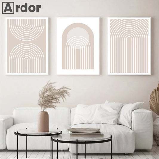 Pink Rainbow Geometric Line Abstract Boho Room Decor Modern Wall Art Canvas Painting Nordic Posters And Prints Living Room Decor
