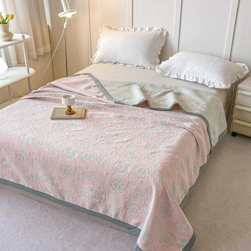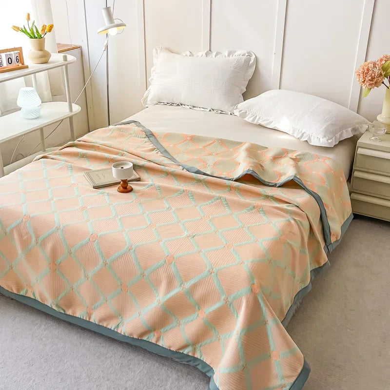 100% Cotton gauze blanket Queen King Size bed linen Jacquard bed plaid stitch Coverlet home bedding Bedspread on the bed Sheet
