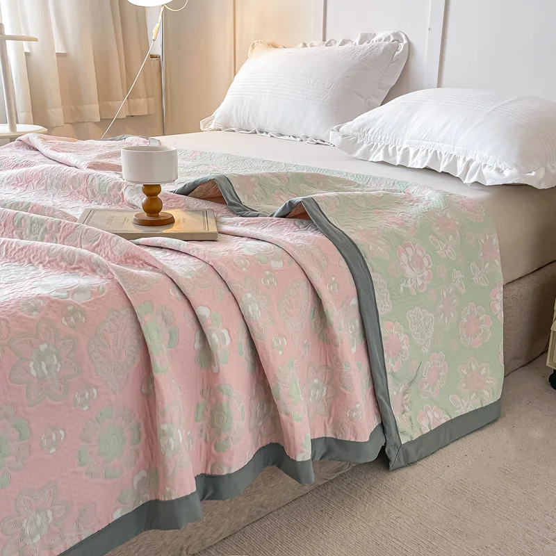 100% Cotton gauze blanket Queen King Size bed linen Jacquard bed plaid stitch Coverlet home bedding Bedspread on the bed Sheet
