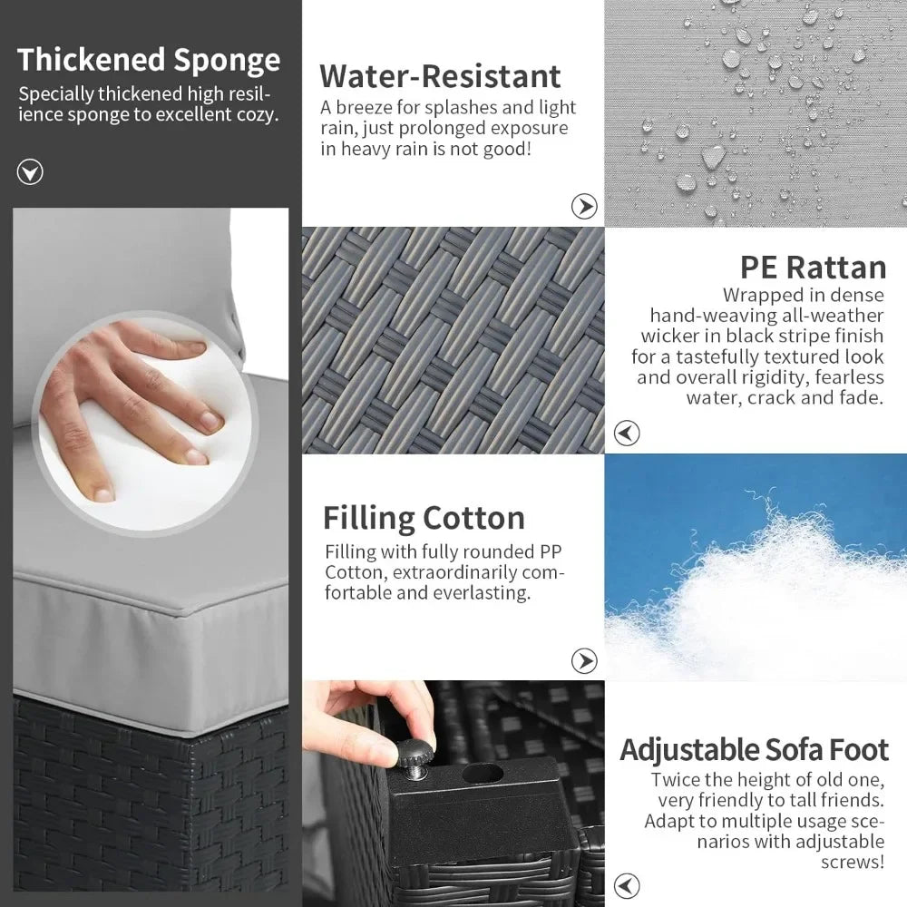 3 Pieces Patio Furniture Set Outdoor Sectional Wicker Patio Furniture Patio Couch with Ottoman and Outdoor Storage Table