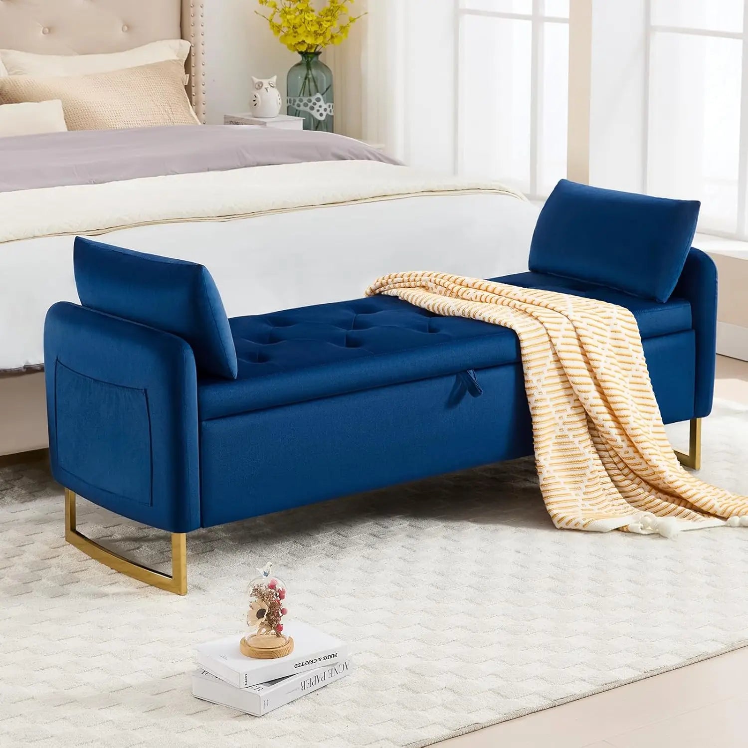 67" Storage Ottoman Bench, End of Bed King Size Bench | Tufted Button Upholstery with Gold Legs for Bedroom, Living Room