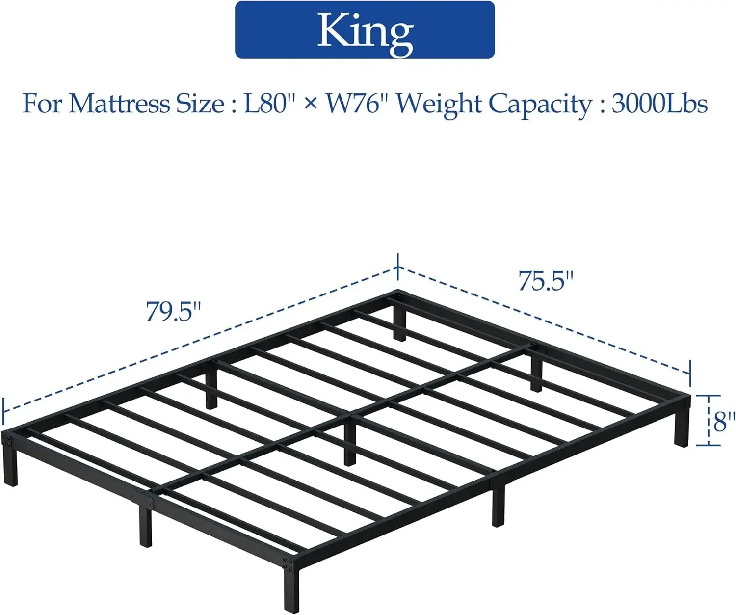 - Cal king bed frame dimension:83.5" L x 71.5" W x 8" H. Weight capacity up to 3000lbs.
