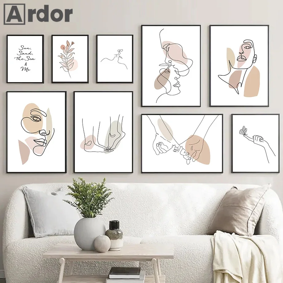 Abstract Line Women Face Couple Kiss Posters Hand In Hand Butterfly Prints Minimalism Nordic Wall Art Canvas Painting Home Decor