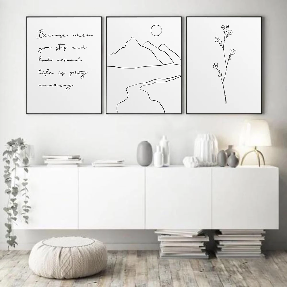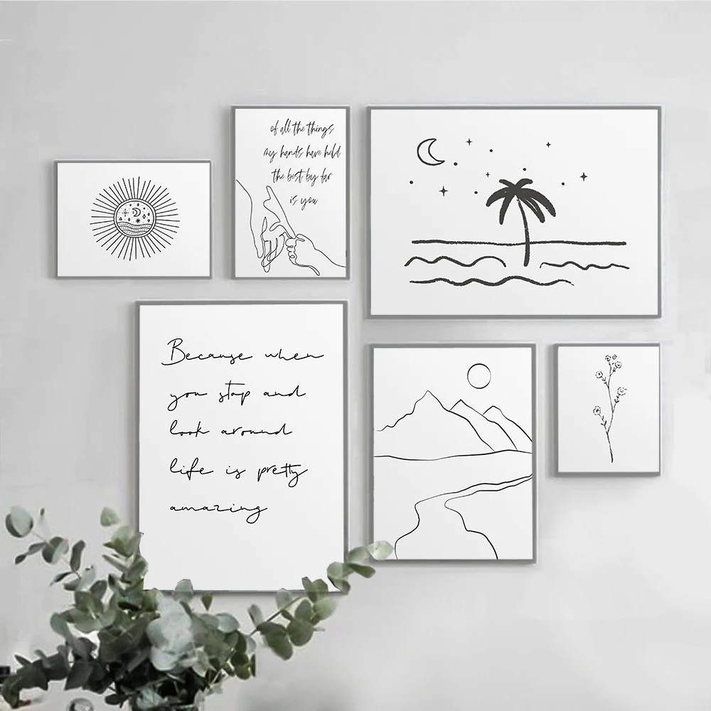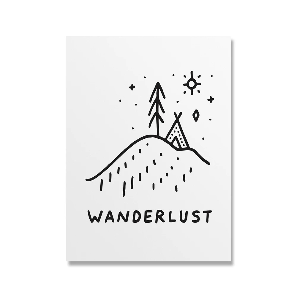 Black White Adventure Motivational Quote Posters Fine Line Wall Art Prints Canvas Painting Nordic Wall Pictures Kids Room Decor