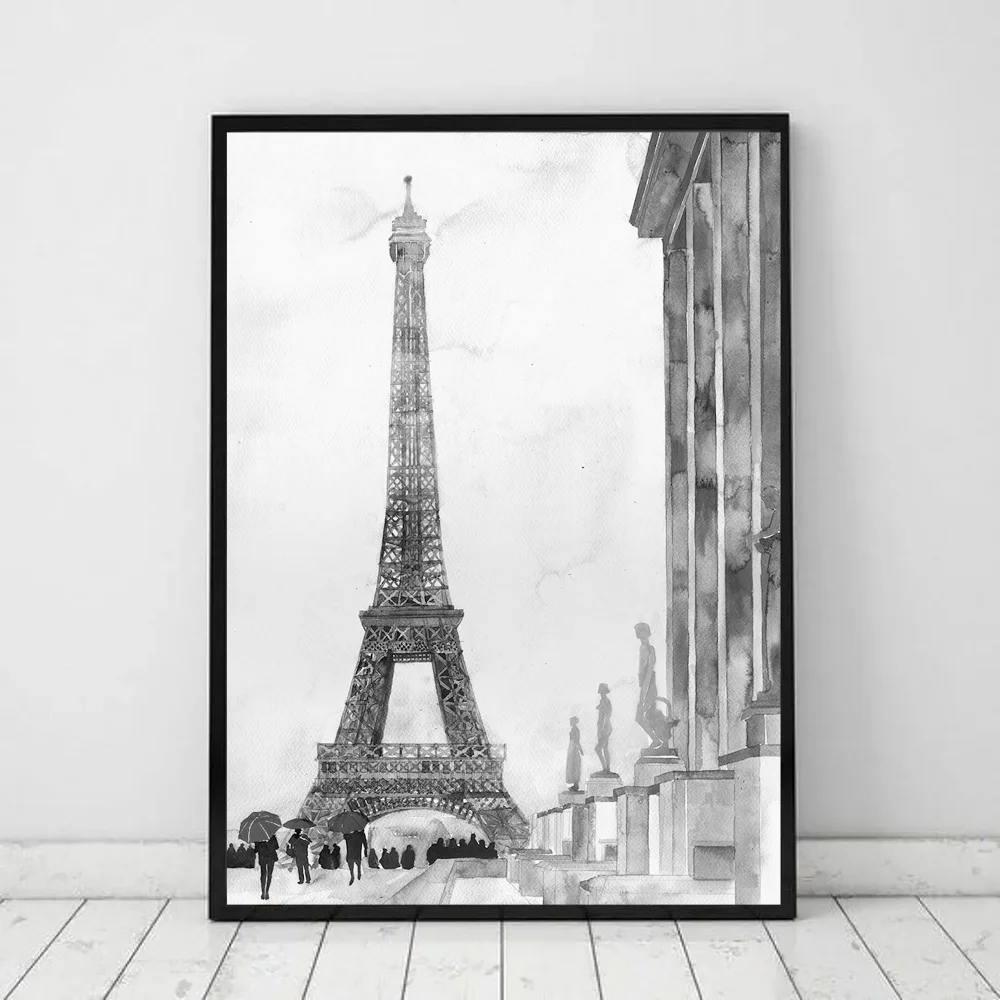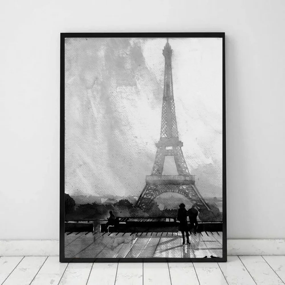 Black White Retro Paris London Anime Posters Sticky HD Quality Wall Art Retro Posters for Home Kawaii Room Decor