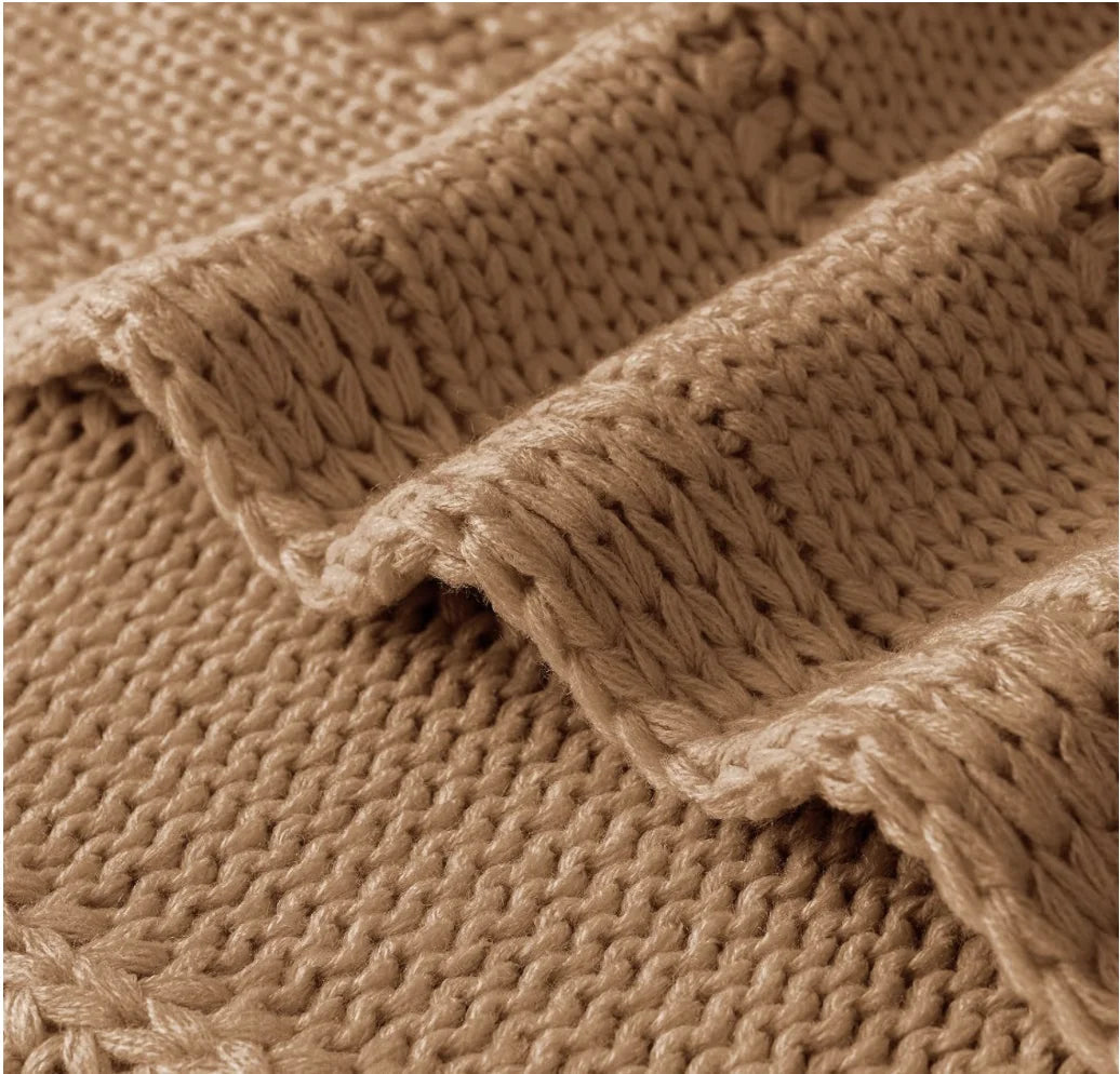 Cable Knit Light Brown Throw Blanket Twin Size for Couch, Super Soft Warm Cozy Decorative Knitted Throw Blanket 3.6LB for Bed