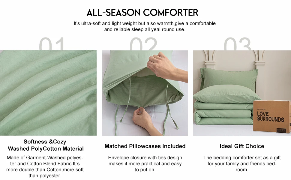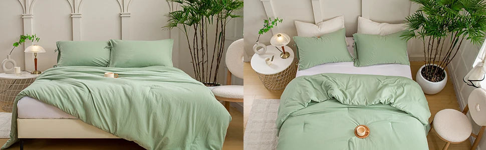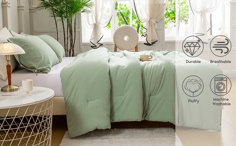 California King size(104"x96") Ultra-Soft sage green Comforter Sets teen College Dorm Lightweight Washed Polycotton Fabric