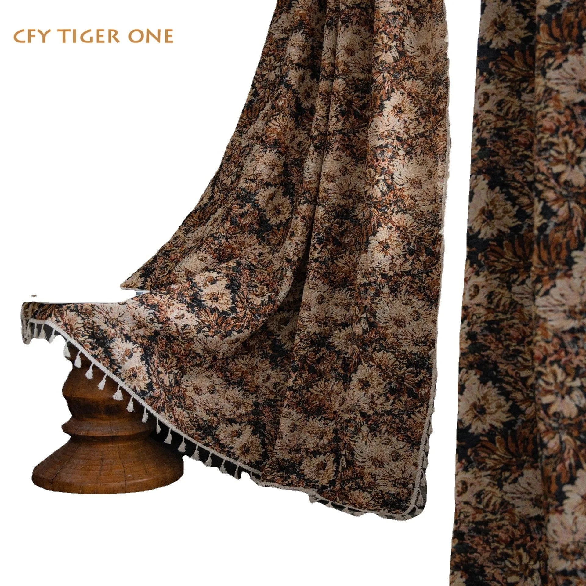Cotton Linen American Vintage Sunflower Oil Painting Window Curtain Thick Blackout Tassel Drapes Curtains for Living Room