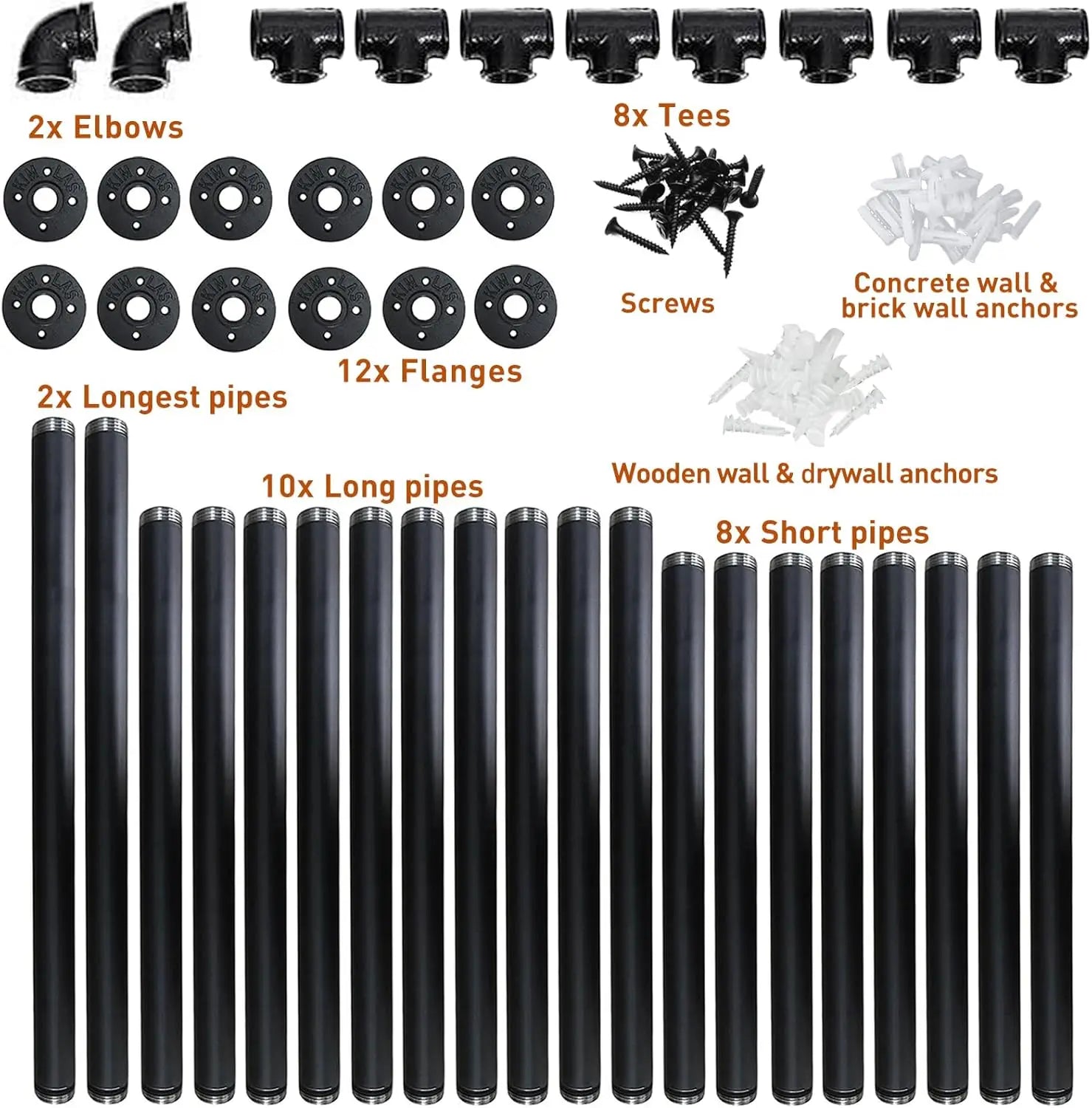 HITOMEN Industrial Iron Pipe Shelves, 2 Set 5-Tier 70.5" Tall 12" Depth, DIY Open Bookshelf Bookcase, Wall Mounted Vintage Retro