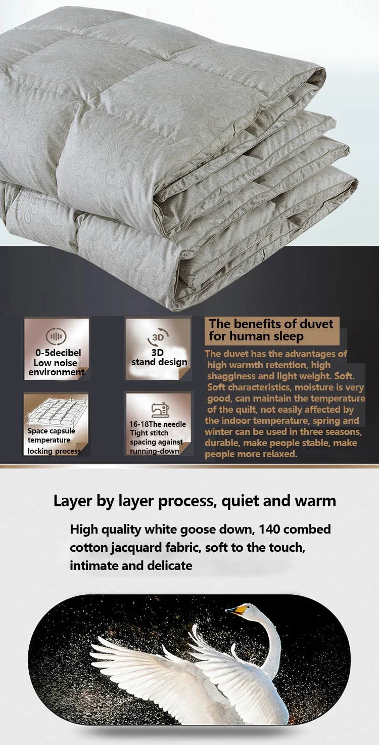 Luxury jacquard Winter goose down comforter Hotel style down comforter Super soft fluffy Queen double bed full size four season down blanket