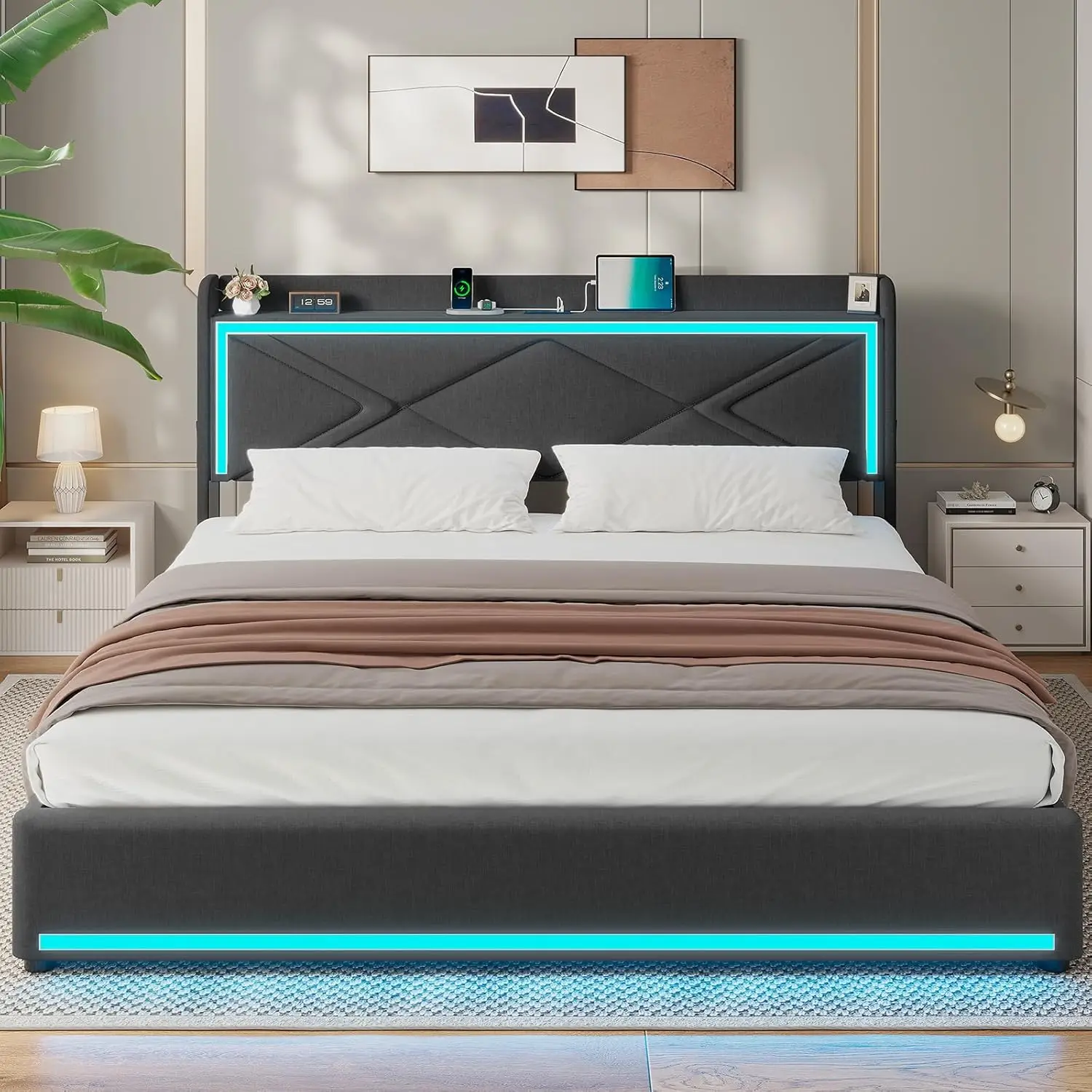 - 【Smart LED Bed Frame】-This bed frame supports the headboard and footboard RGB LED light. beautiful Multi-colour RGB LED Light(There are over 60000 colors to choose from),Phone App +Remote Control multiple control modes for you to effortlessly create your favorite bedroom atmosphere. Whether you want soft, warm lights for reading or vibrant colors for ambiance, this smart bed has it all. Start enjoying the endless possibilities of this modern smart LED bed frame!