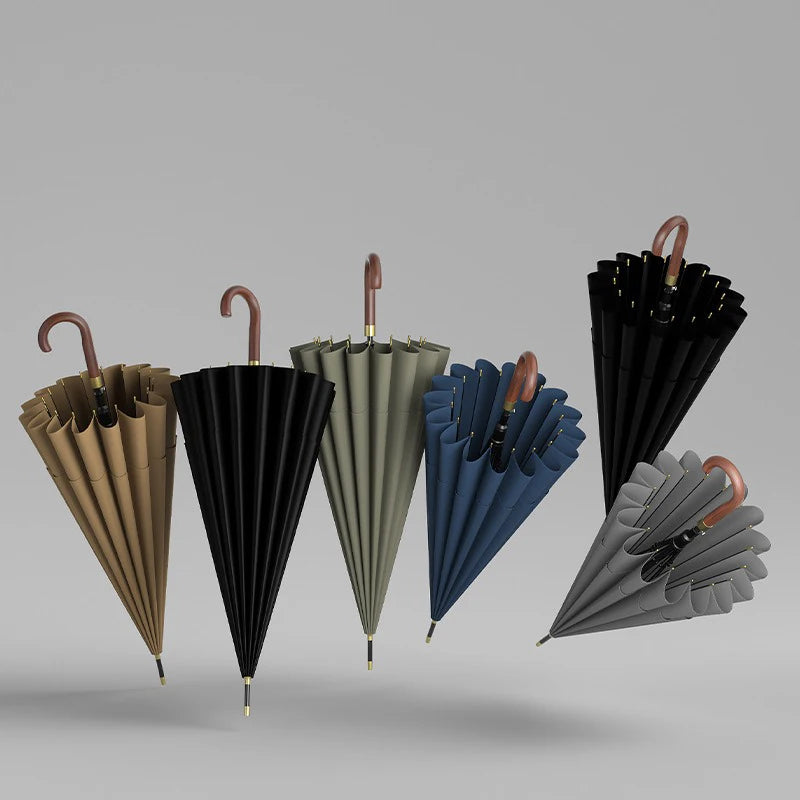 Large Windproof Umbrella 16K Wooden Handle, Big Size Golf Long Umbrella Strong, Japanese Style Wood Rain Umbrella