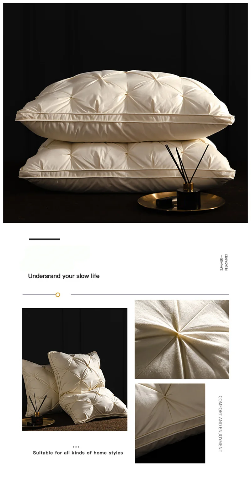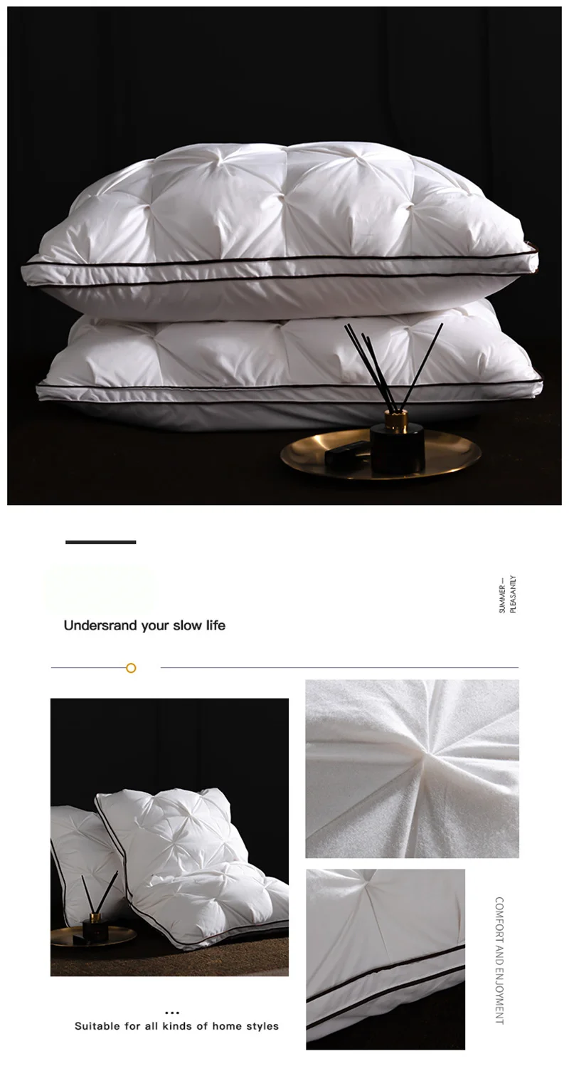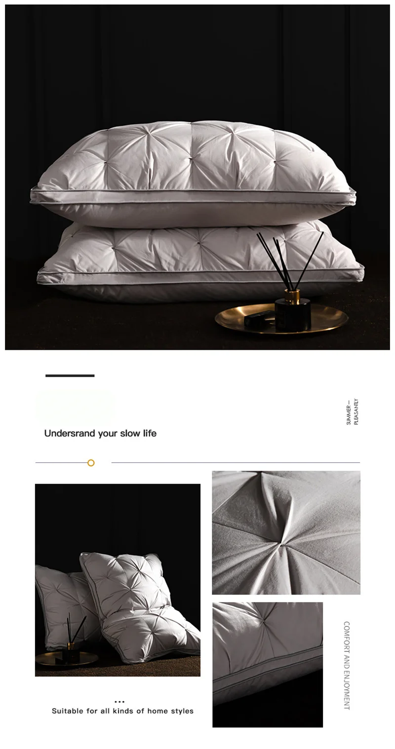 Luxury Goose Down Feather Pillows Inserts, Pinch Pleat Design Standard Queen Size Super Support 5 Star Hotel Bed Sleeping Pillow