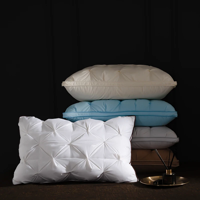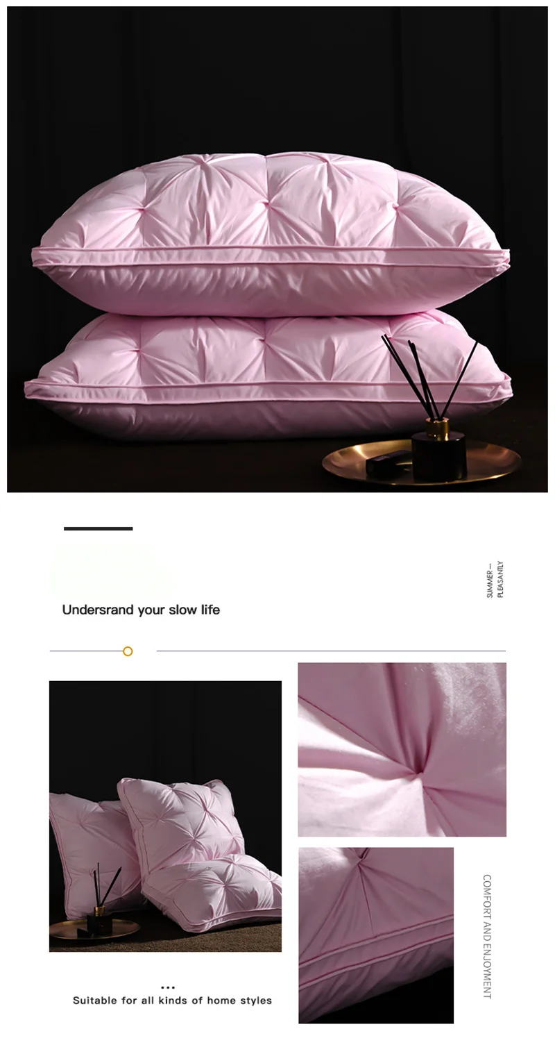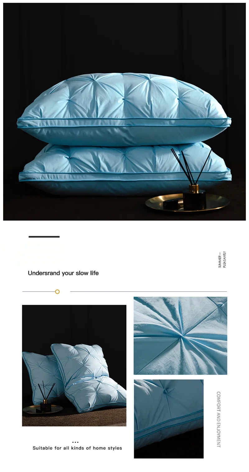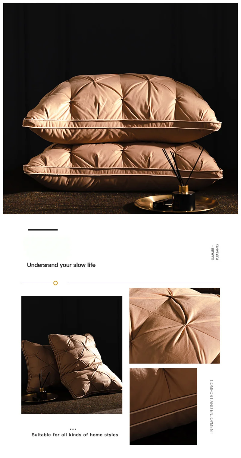 Luxury Goose Down Feather Pillows Inserts, Pinch Pleat Design Standard Queen Size Super Support 5 Star Hotel Bed Sleeping Pillow