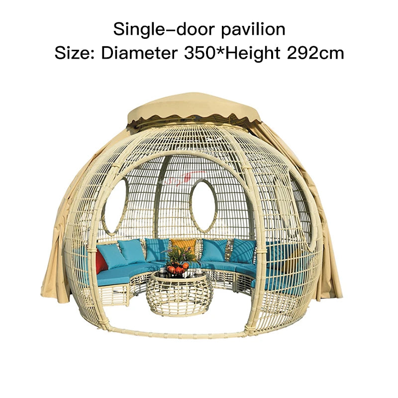 Moder Outdoor Rattan Tent With 3 Doors Sofa For Garden Terrace Courtyard Home Hemispherical Water Proof Cloth Camping Furniture