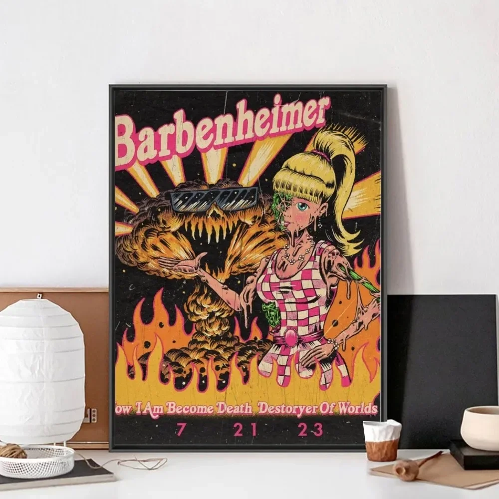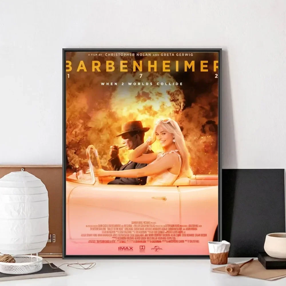 Movie Barbenheimers Poster No Framed Poster Kraft Club Bar Paper Vintage Poster Wall Art Painting Bedroom Study Stickers