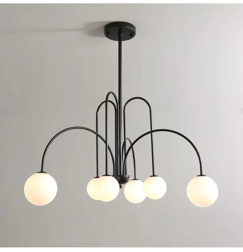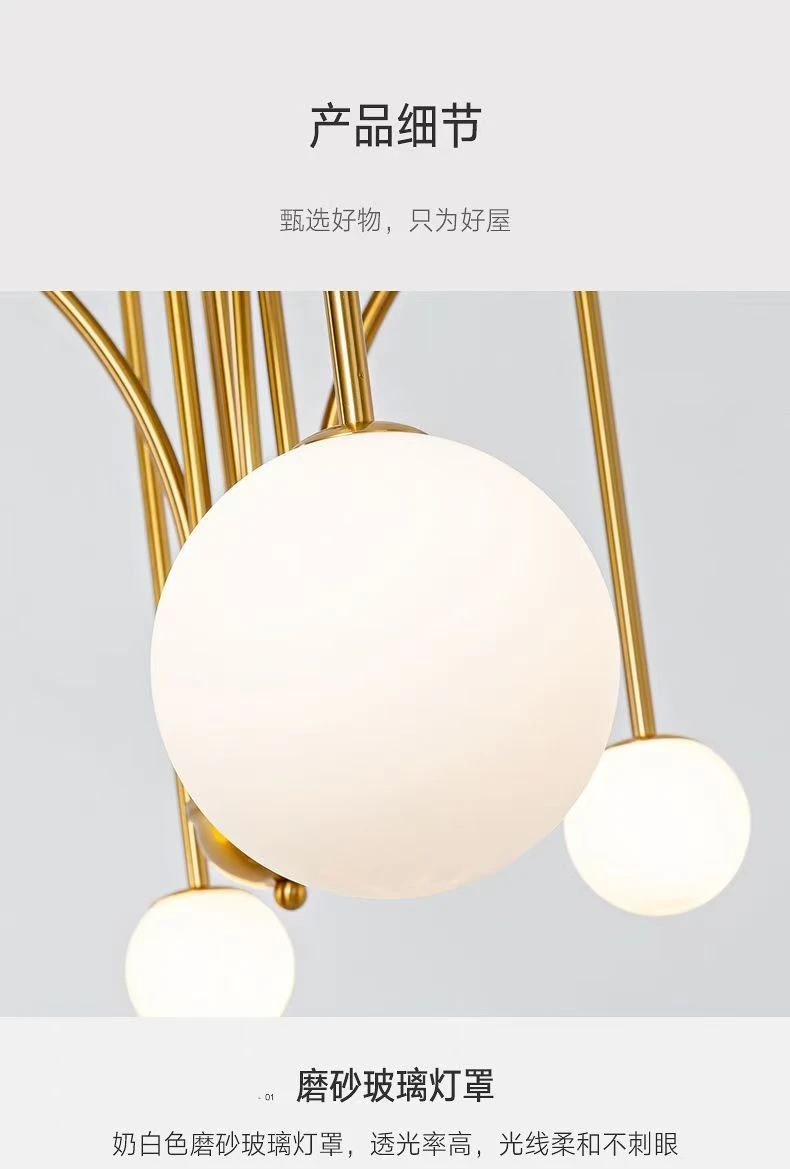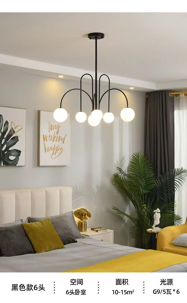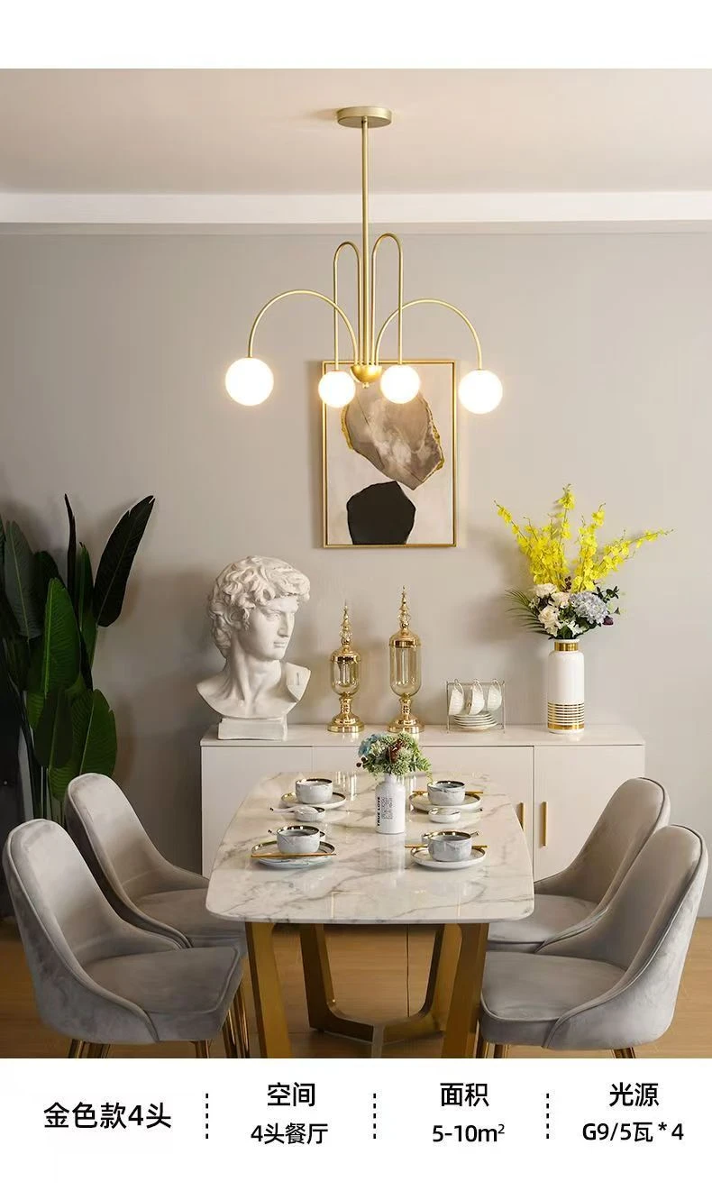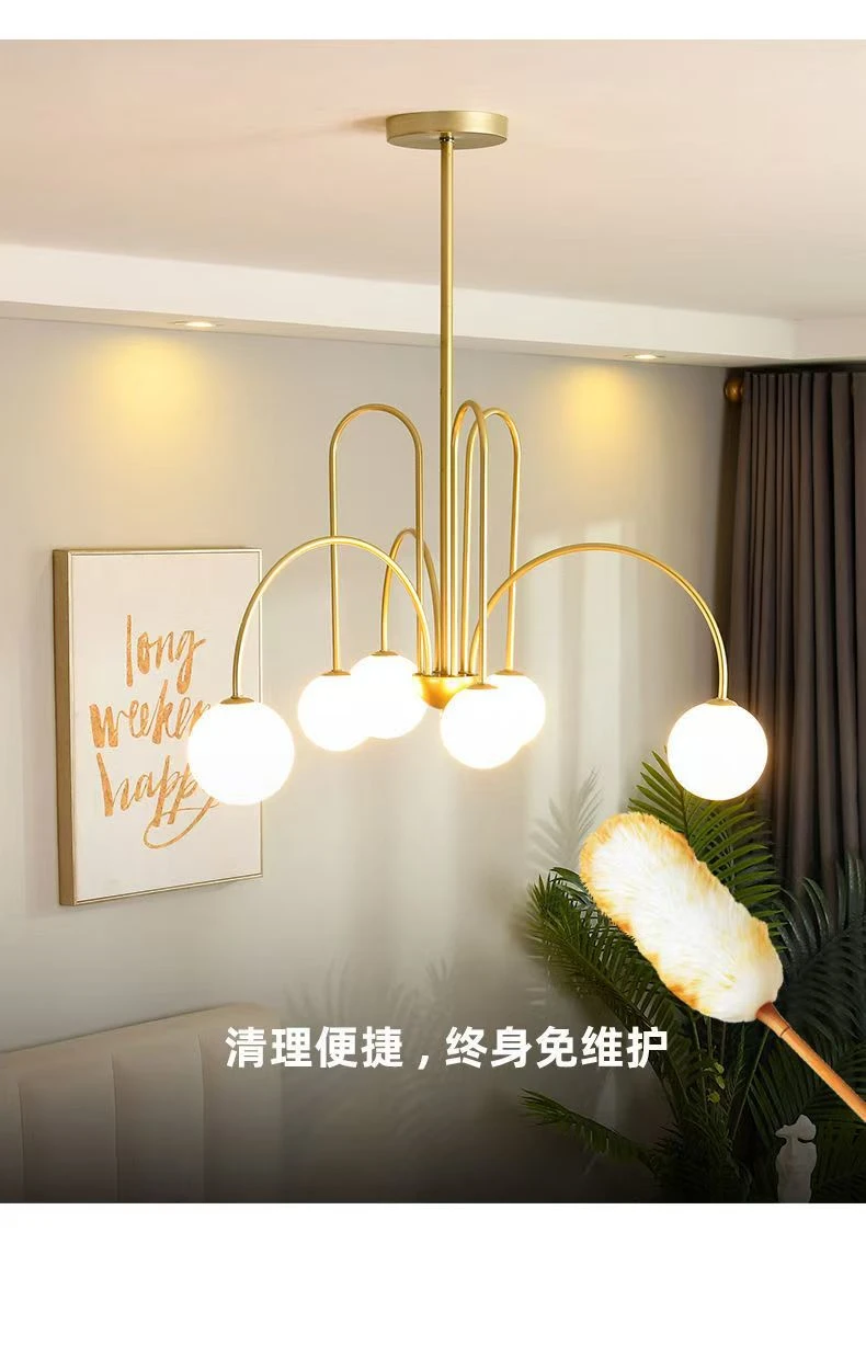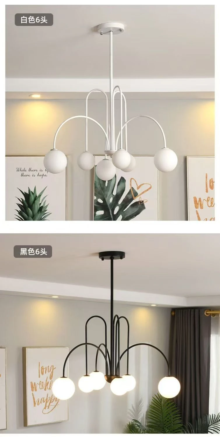 Nordic Iron Bending Glass Ball Living Room Light Simple Fashion Dining Room Chandelier Room Decoration Interior Lighting Lamps