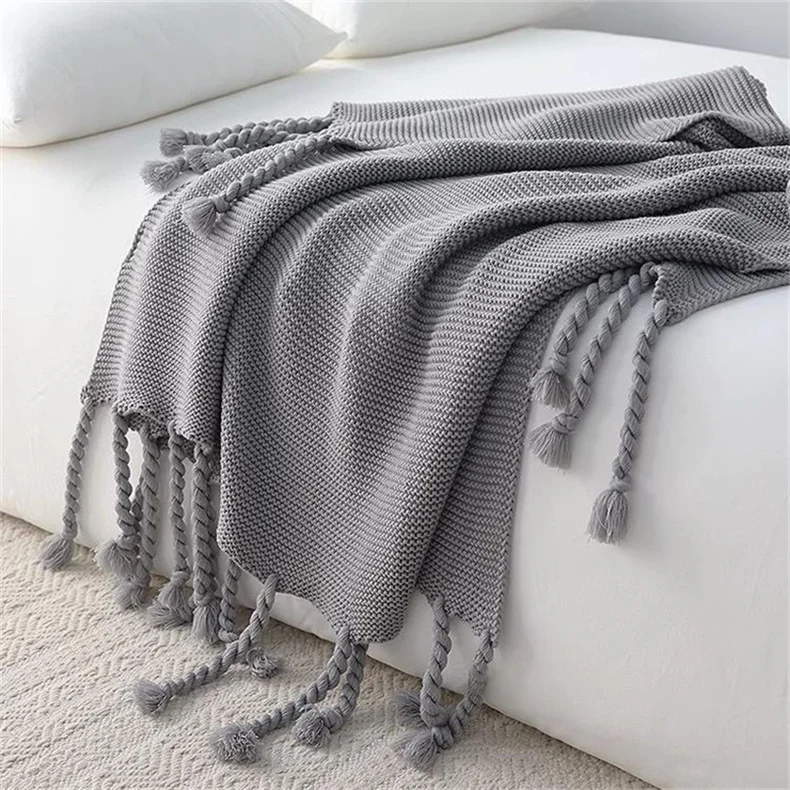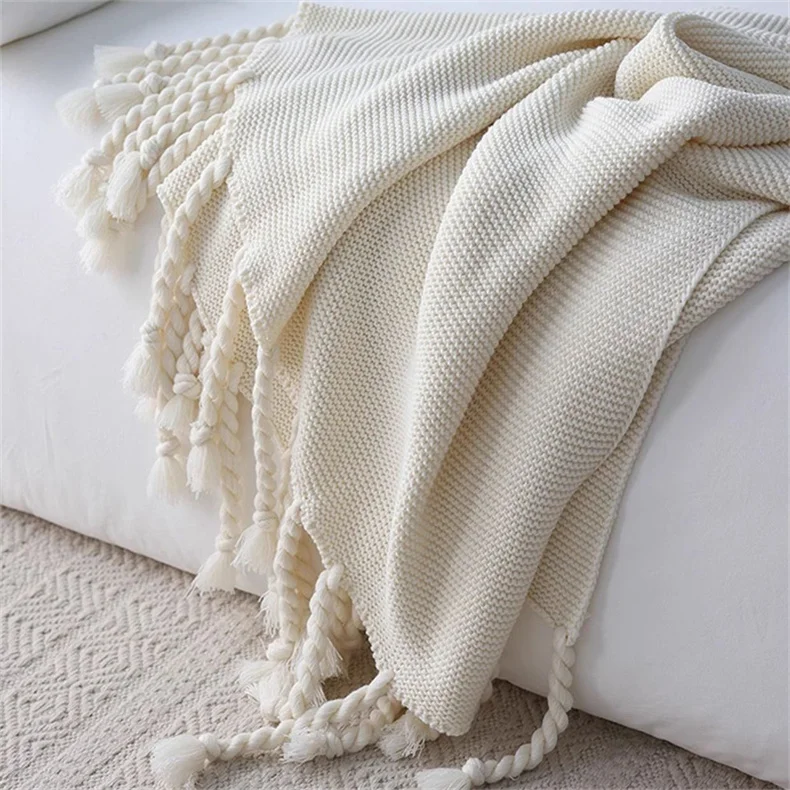 Knitted Blanket Throw Nordic Cozy Cable Plaid Knit Blankets for Bed Sofa Cover Bedspread