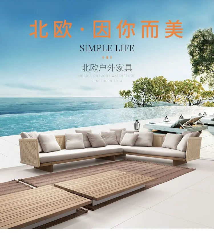 Nordic Waterproof Outdoor Sofa Hotel Courtyard Garden Terrace Sofa Teak Combination Tuinmeubelen Sets Living Room Furniture