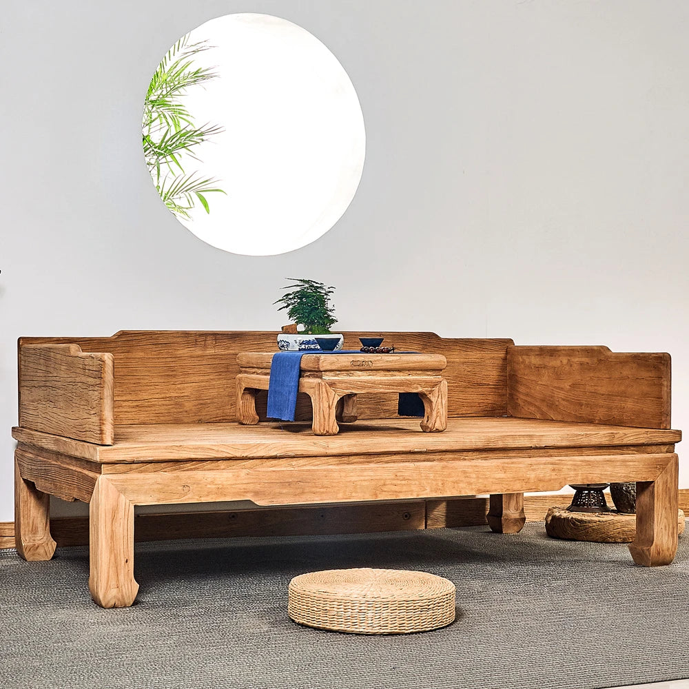 Old elm solid wood new Chinese style Luohan bed old door panel zen sofa