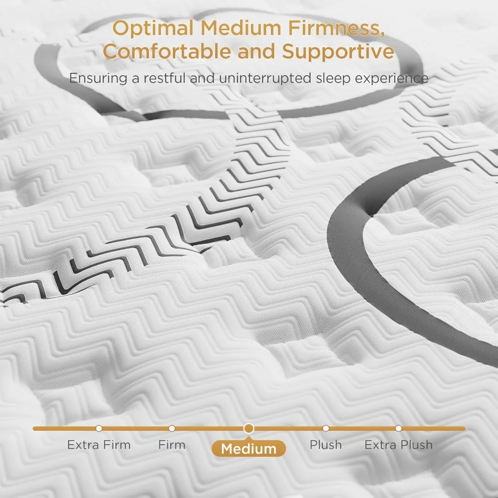 - Pressure Relief and Edge Support: The unique memory foam layer of the queen mattress 10 inch fits your body contours, evenly distributes weight and relaxes muscles all over the body. It adopts an 8-layer hybrid design, which is ergonomic and can meet various body shapes and sleeping postures. The hybrid medium firm mattress uses reinforced springs at the edges to prevent sagging and collapse, providing more stable support and durability