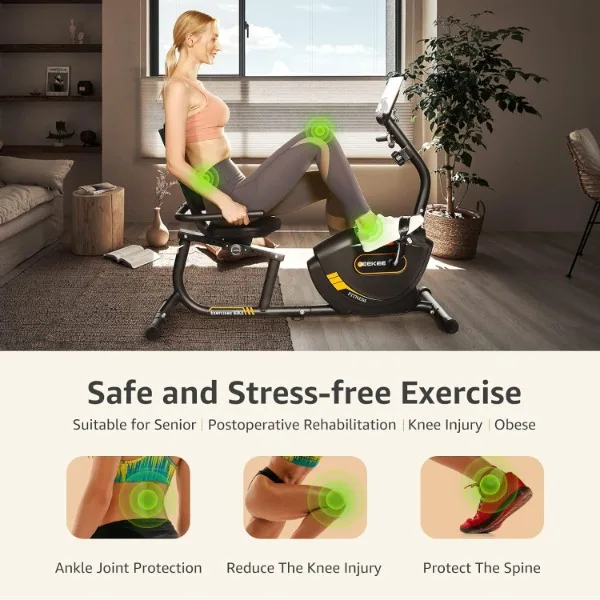 • 【Low-Cost & Efficient Workouts】JEEKEE has always been committed to combining life with exercise, especially the recumbent exercise bike is designed according to the advice of rehabilitation professionals. A proper exercise bike is important for the elderly, obese, pregnant and those with knee and waist injuries.