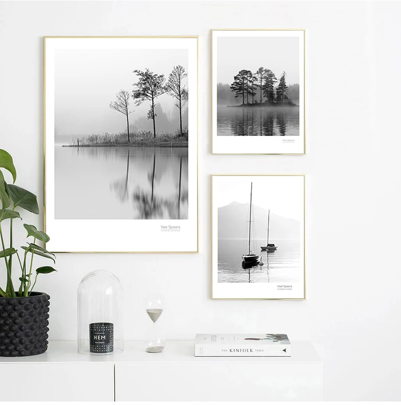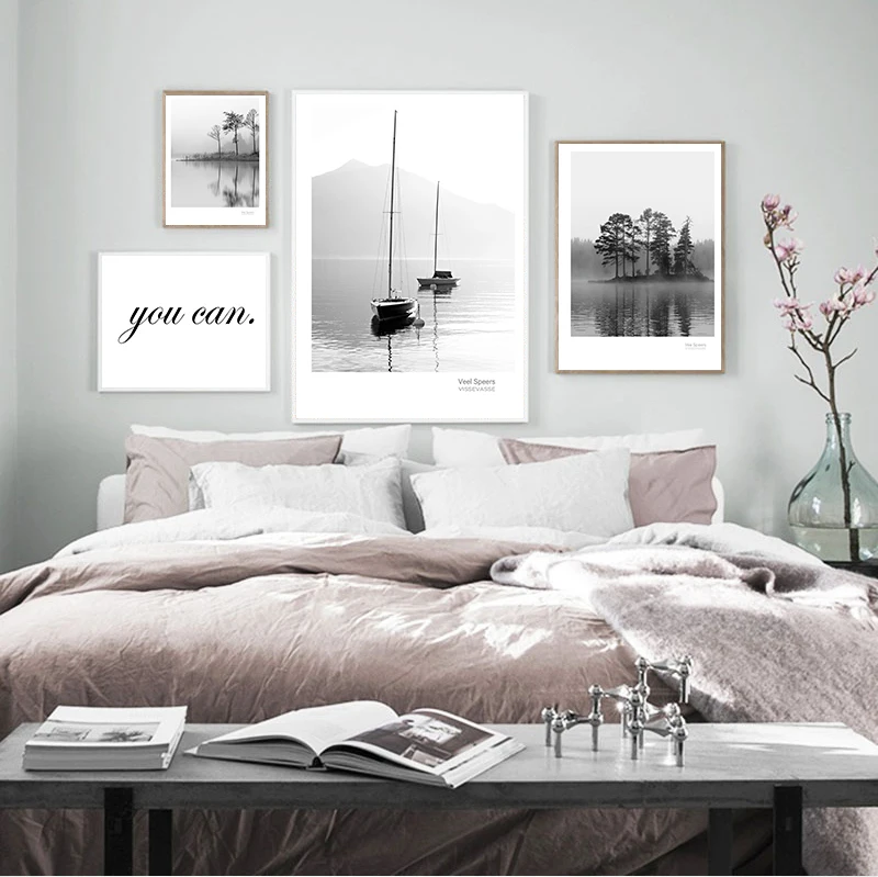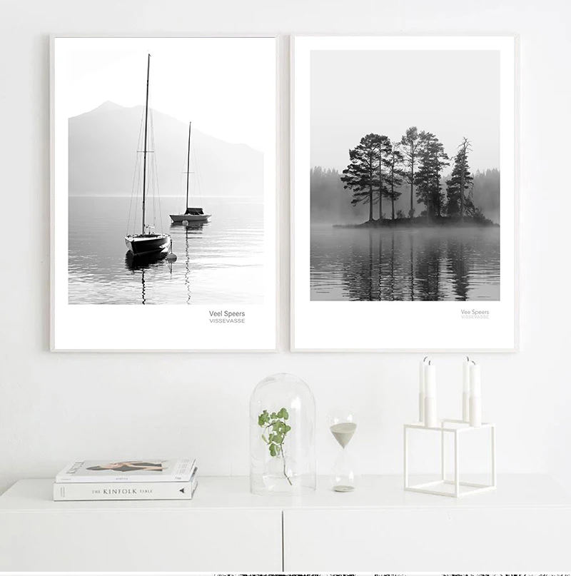 Scandinavian Landscape Canvas Nordic Style Lake Boat Forest Nature Wall Art Print Painting Decoration Pictures Home Decor