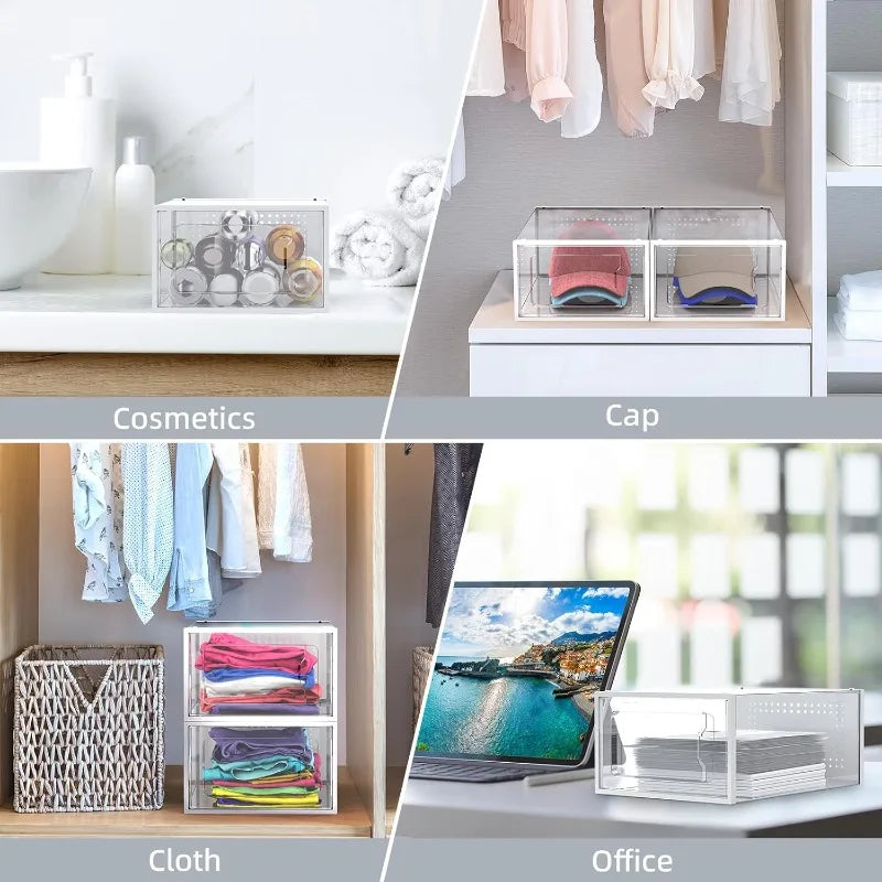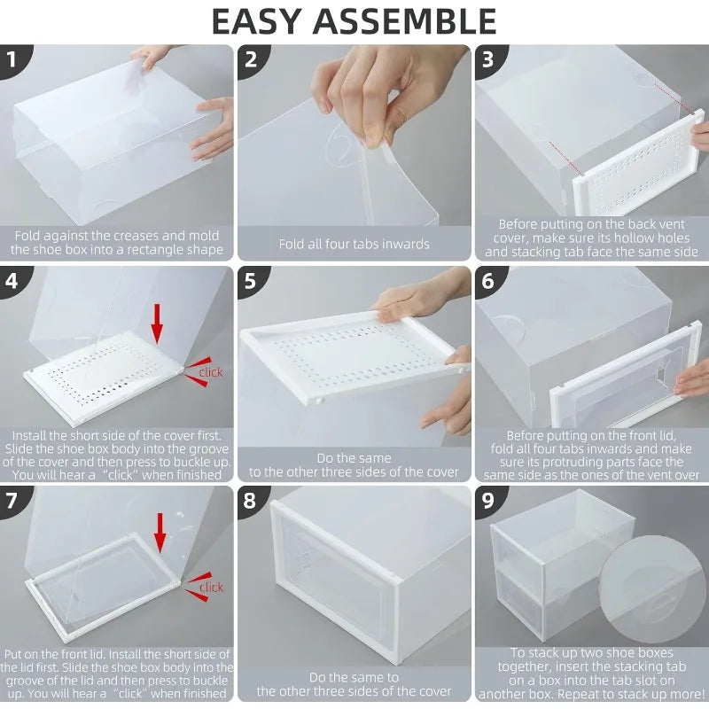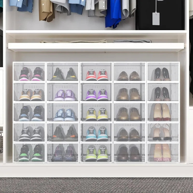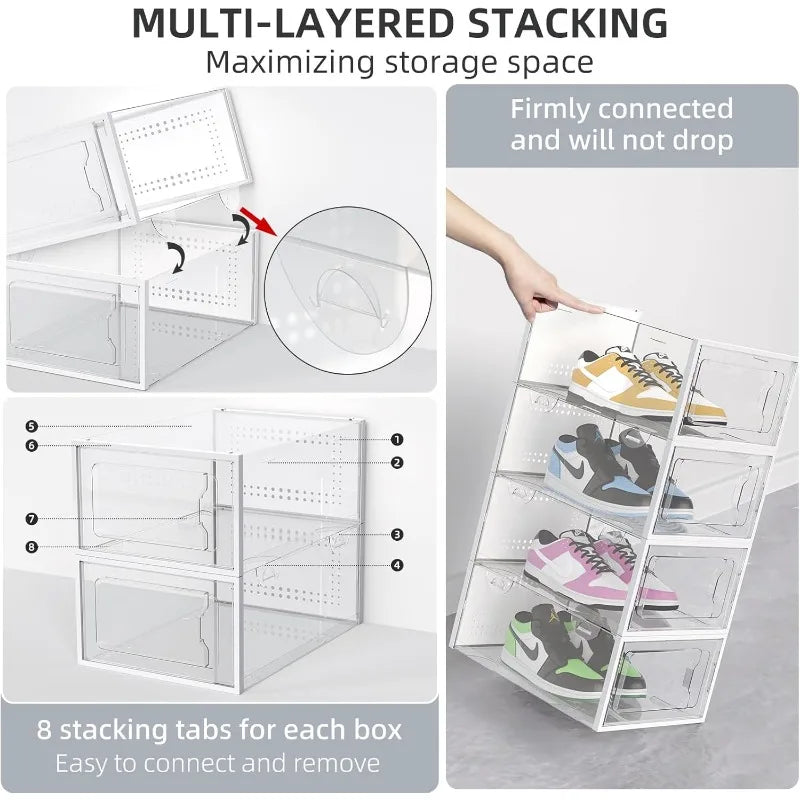 Shoe Boxes Clear Plastic Stackable, 18 Pack Premium Shoe Organizer Storage for Closet Space Saving Foldable Shoe Rack