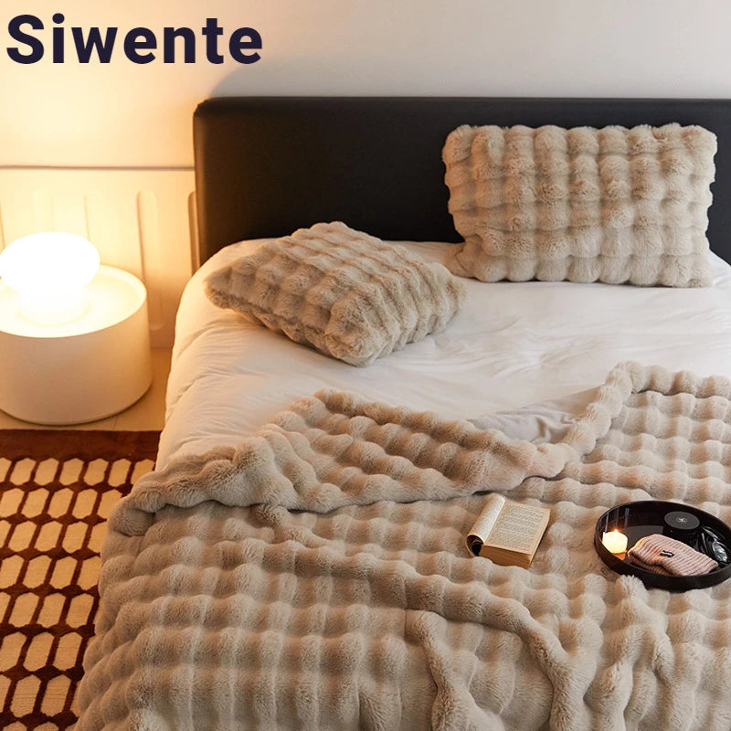 Soft and Warm INS Blanket for Bed Office Anti-rabbit Fur Double-sided Thick Winter Quilt 2024 Bubble Plush Pillowcase Explosive