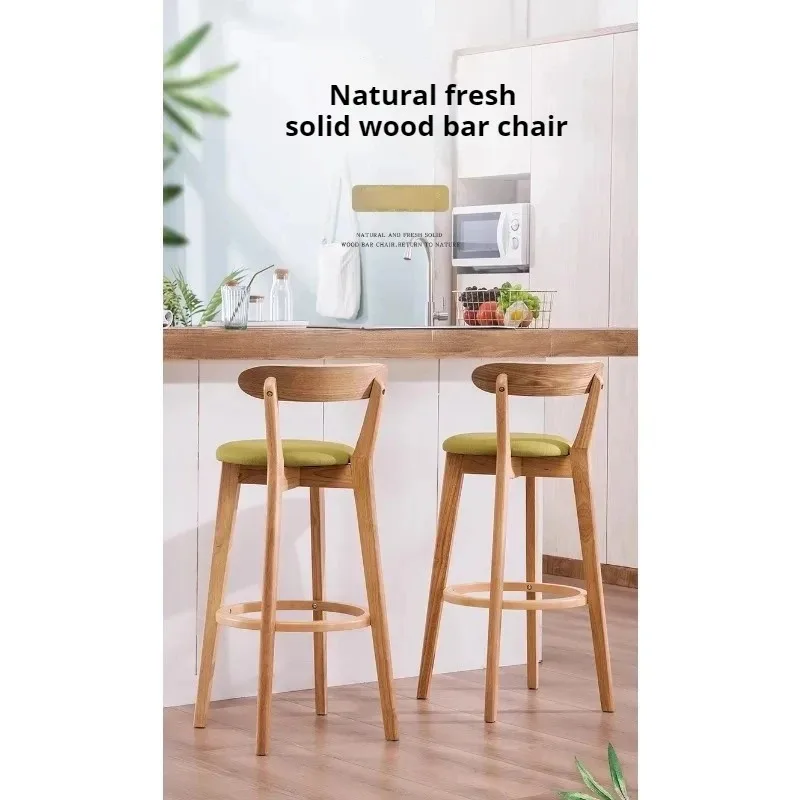 Solid Wood Bar Stool High Backrest Modern Minimalist Artificial Leather Sandalye Counter Comfortable Replica Design Furniture