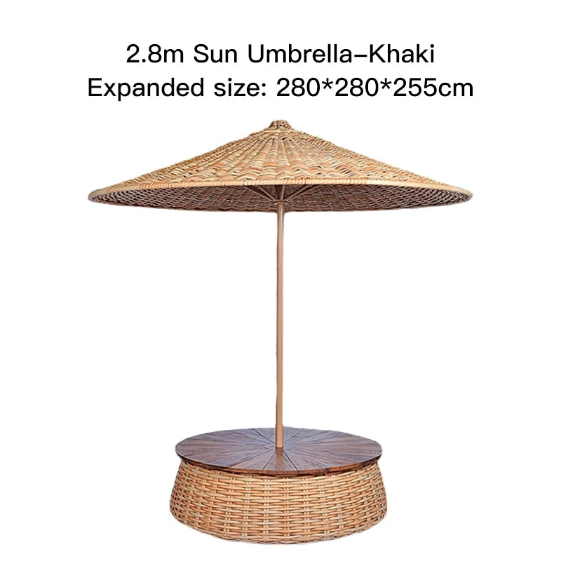 Sun Umbrella To Cover The Outdoor Courtyard Bali Open-Air Rattan Hotel Beach Villa Sun Umbrella Stable Marble Cylindrical Base