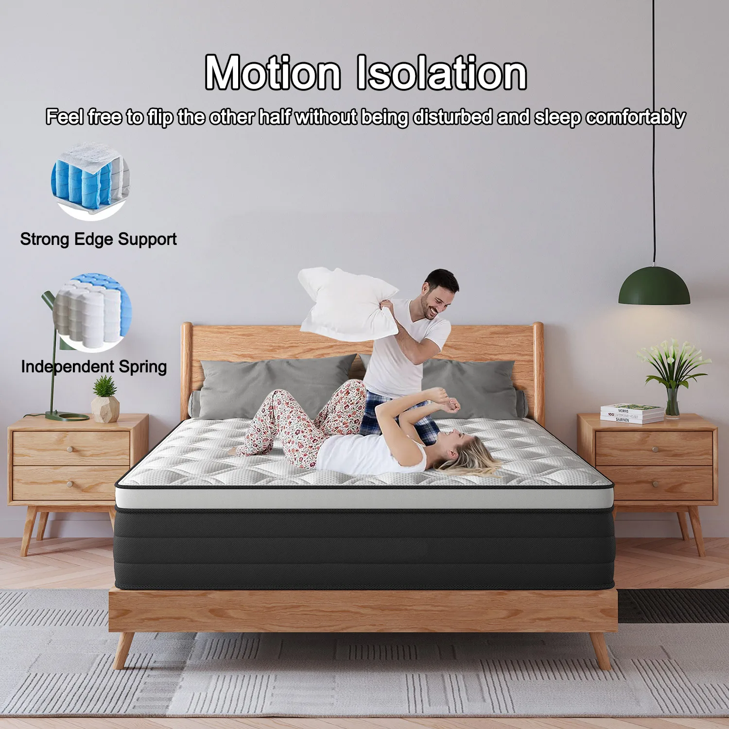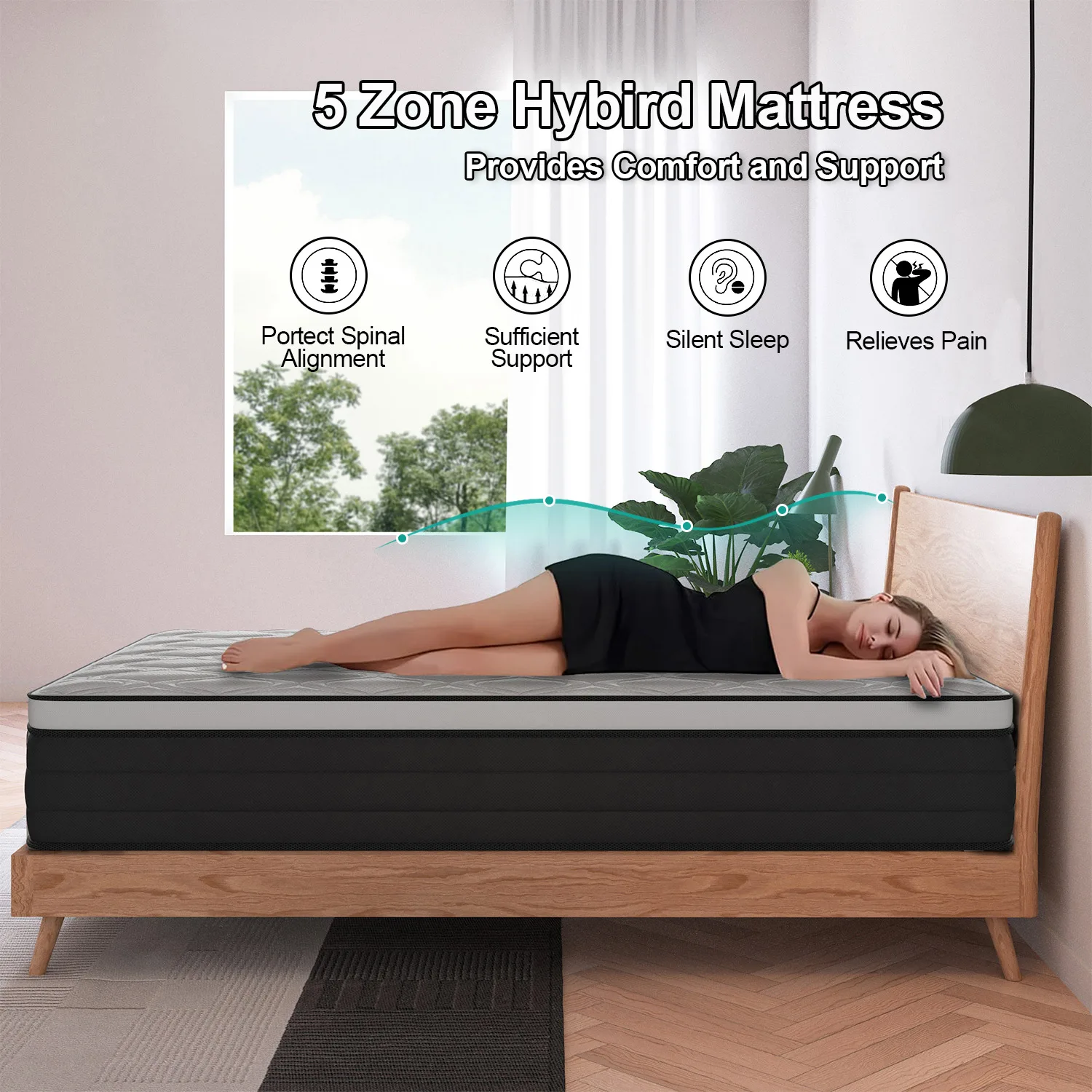 【Silent Sleep, Motion Isolated】: Enjoy a peaceful night's sleep without disturbances with our medium firm hybrid mattress featuring individual pocket springs that minimize noise and motion transfer, making it perfect for couples sharing a bed. Rest assured that you will remain undisturbed throughout the night for a truly serene sleep experience.
