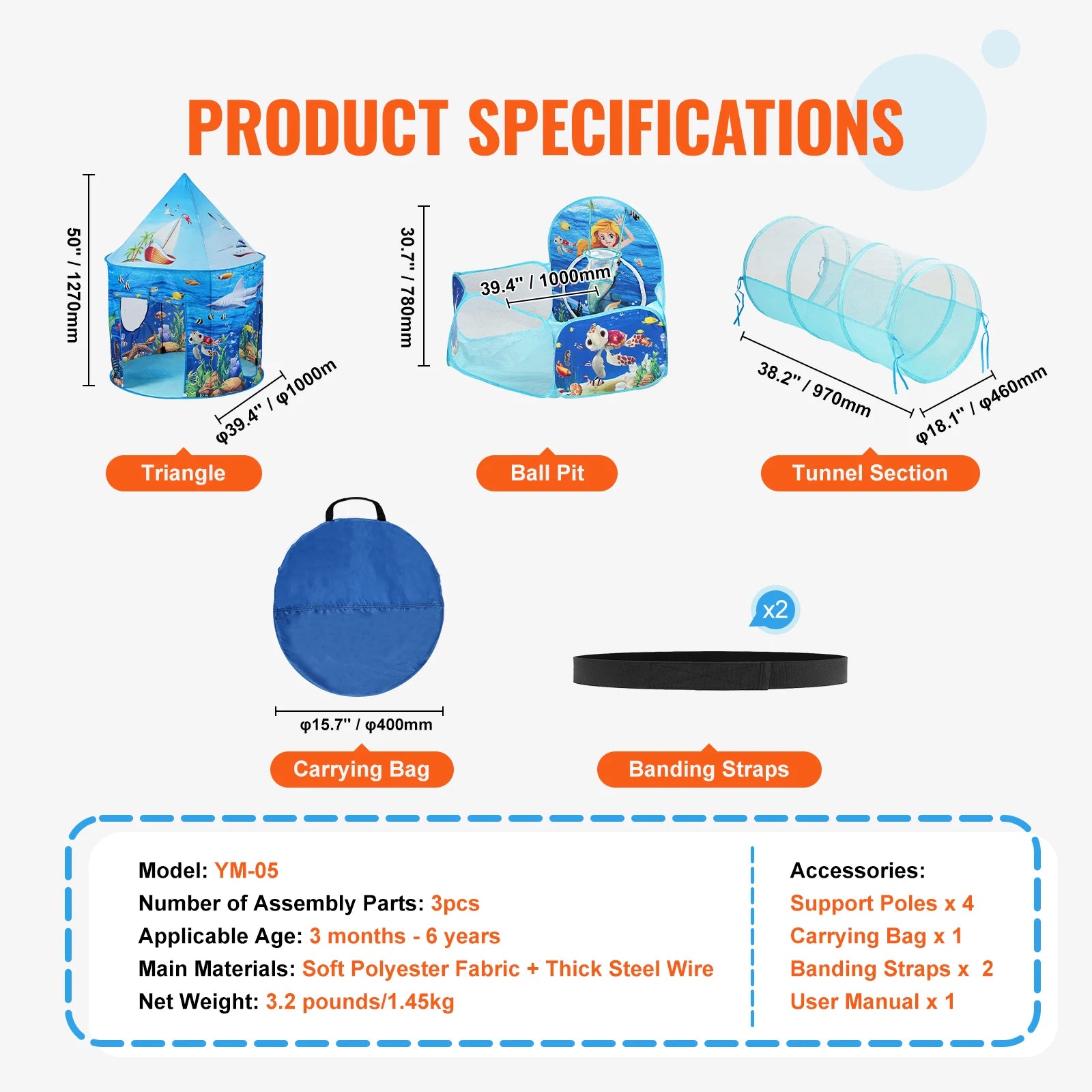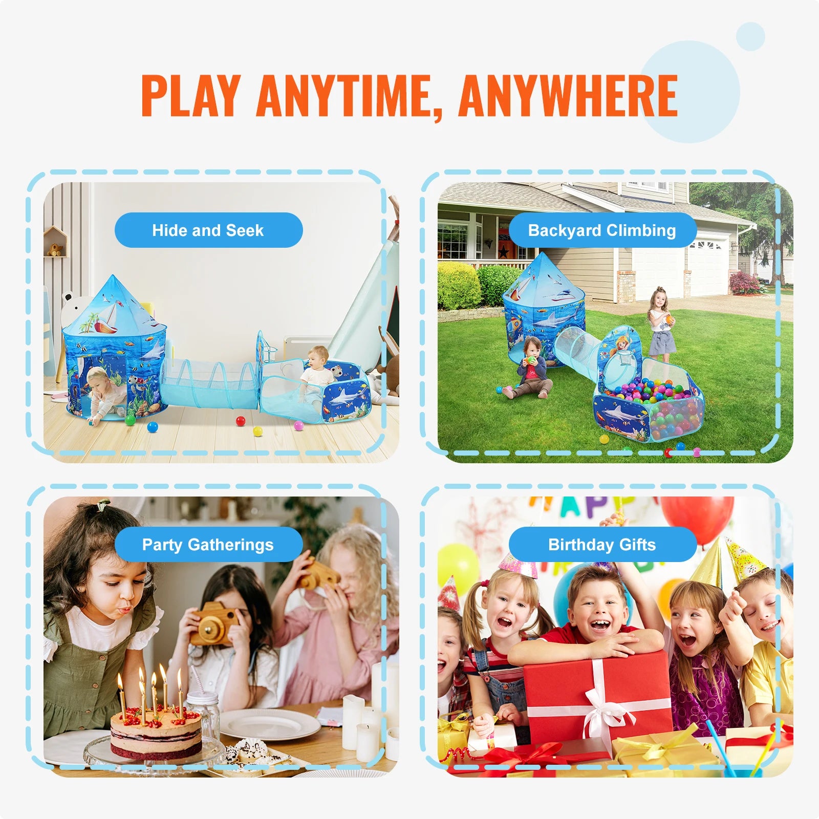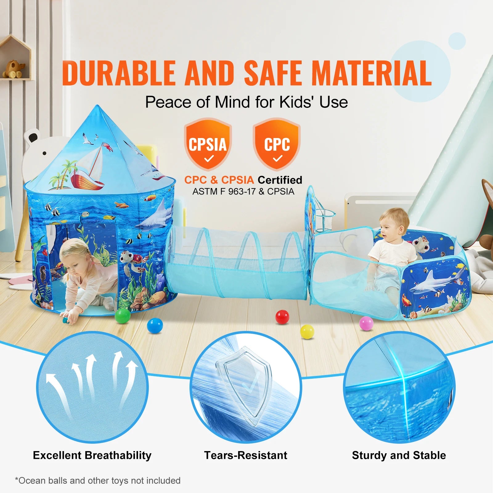 VEVOR 3 in 1 Kids Play Tent with Tunnel Basketball Hoop for Boys Girls Babies and Toddlers Indoor/Outdoor Pop Up Playhouse Gifts