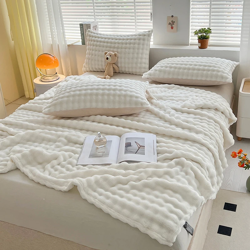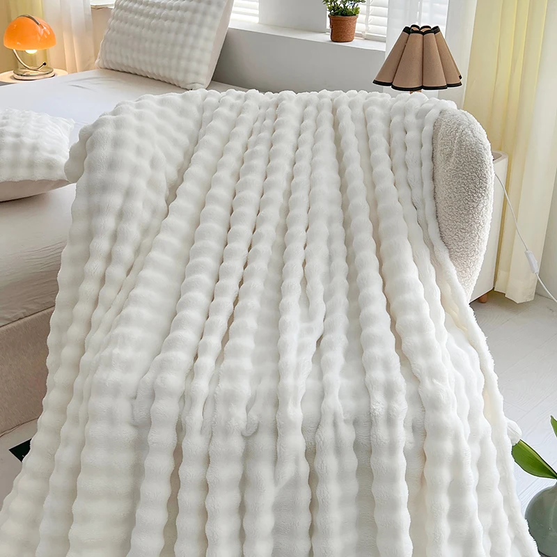 White Luxury Imitation Fur Plush Blanket Warm Super Soft Blankets Bed Sofa Cover Fluffy Throw Blanket for Bedroom Couch Travel