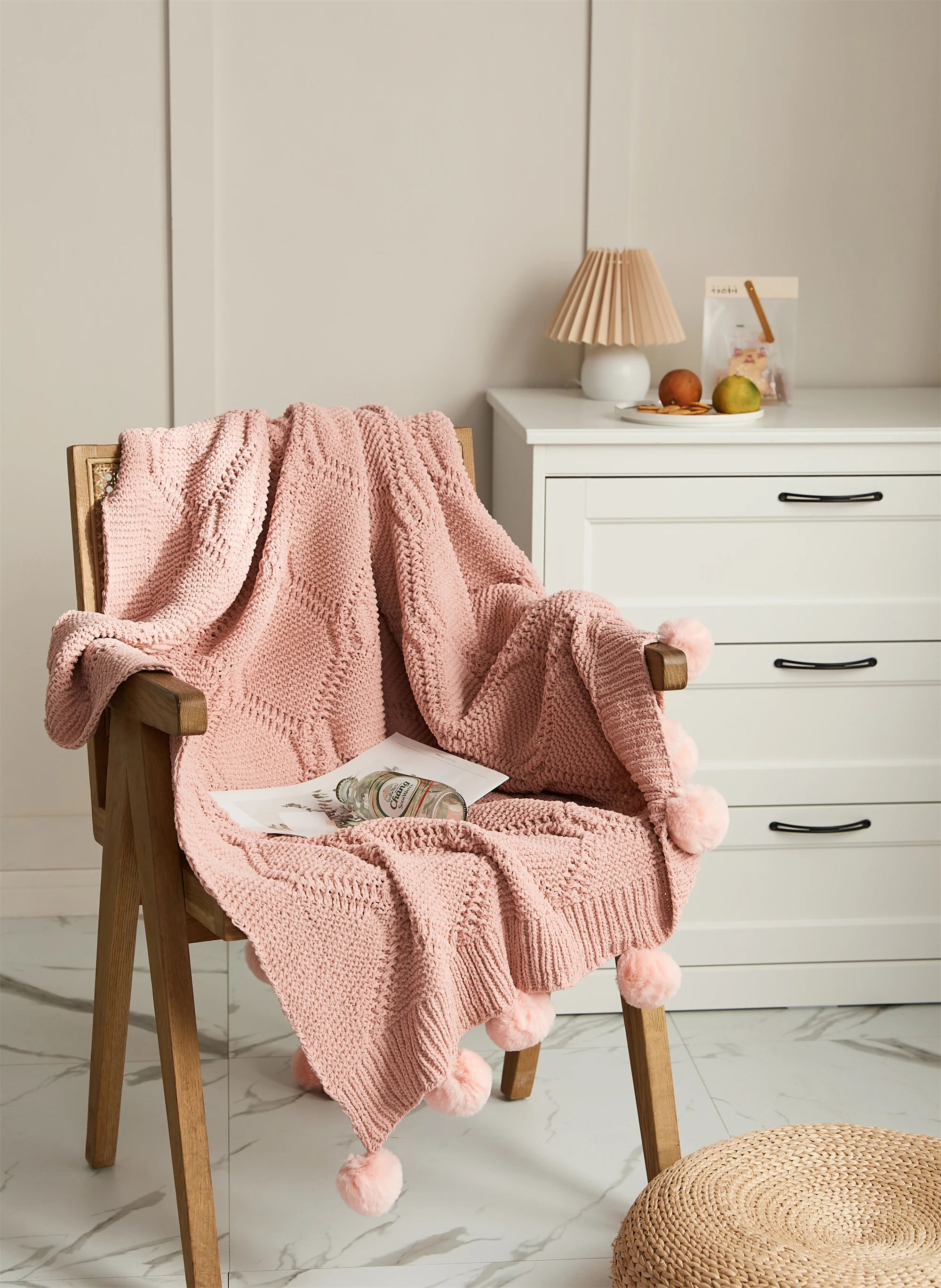 YIRUIO cute pompon chenille knitted plaid blanket